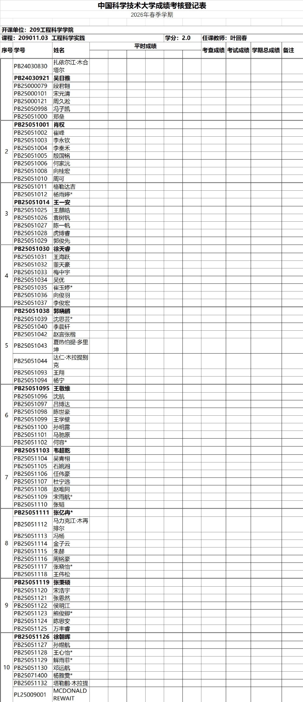 2026年春季学期《工程科学实践》周五分组名单